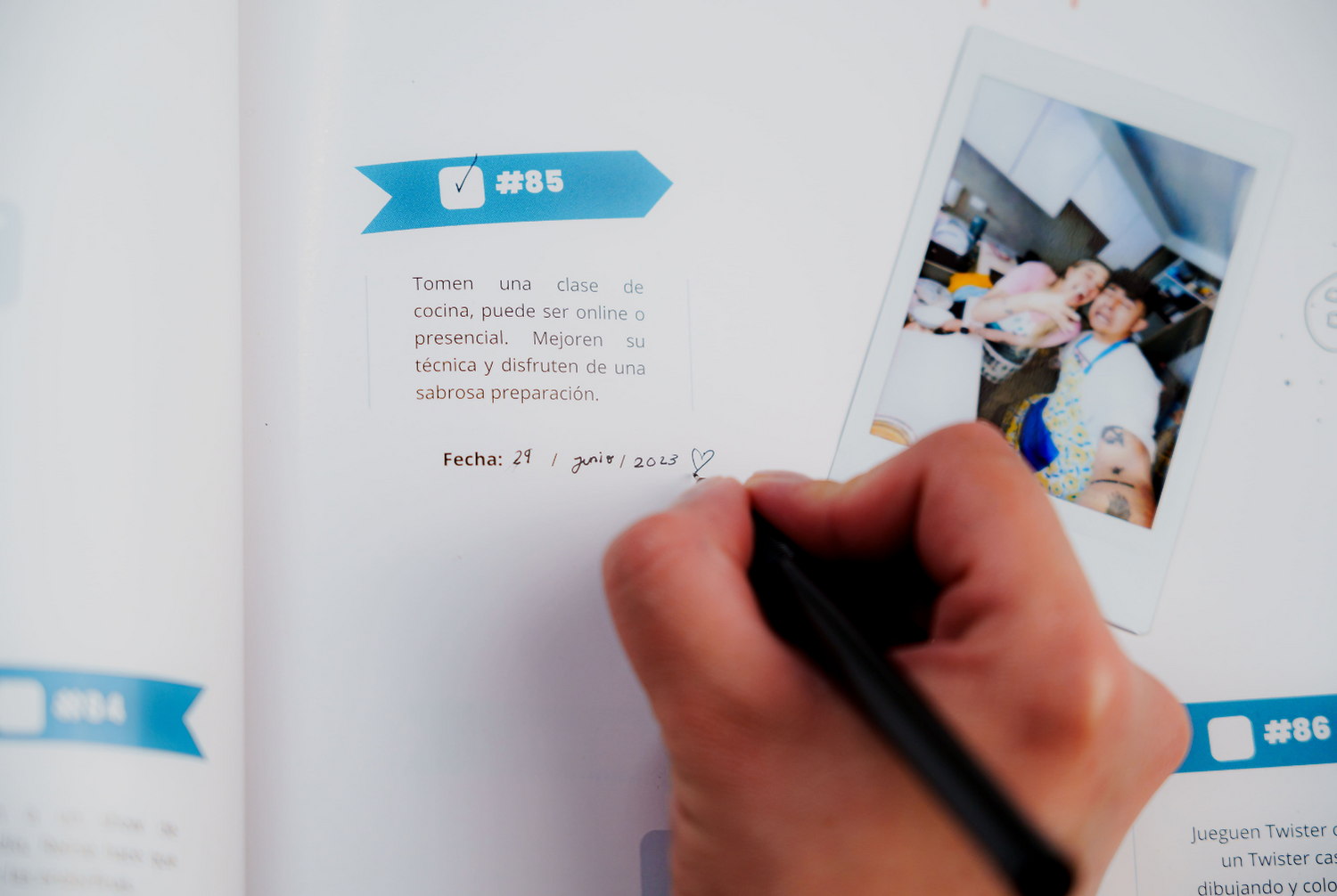 El 'Álbum Parejas' incluye 100 citas diseñadas para realizar con tu pareja. Entre ellas, encontrarás 50 citas secretas que se revelan al raspar, añadiendo una dosis de emoción y sorpresa a tu relación. Desde cocinar con los ojos vendados hasta recrear la primera cita de tus abuelos o crear una obra maestra juntos, estas aventuras te llevarán a vivir momentos espontáneos, románticos y emocionantes que enriquecerán tu relación.